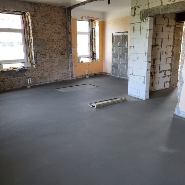 Here you will see images of works such as industrial floor installations, underfloor heating systems, and thermal insulation solutions. The photos include both new constructions and renovation projects, demonstrating our experience and adaptability to various conditions.